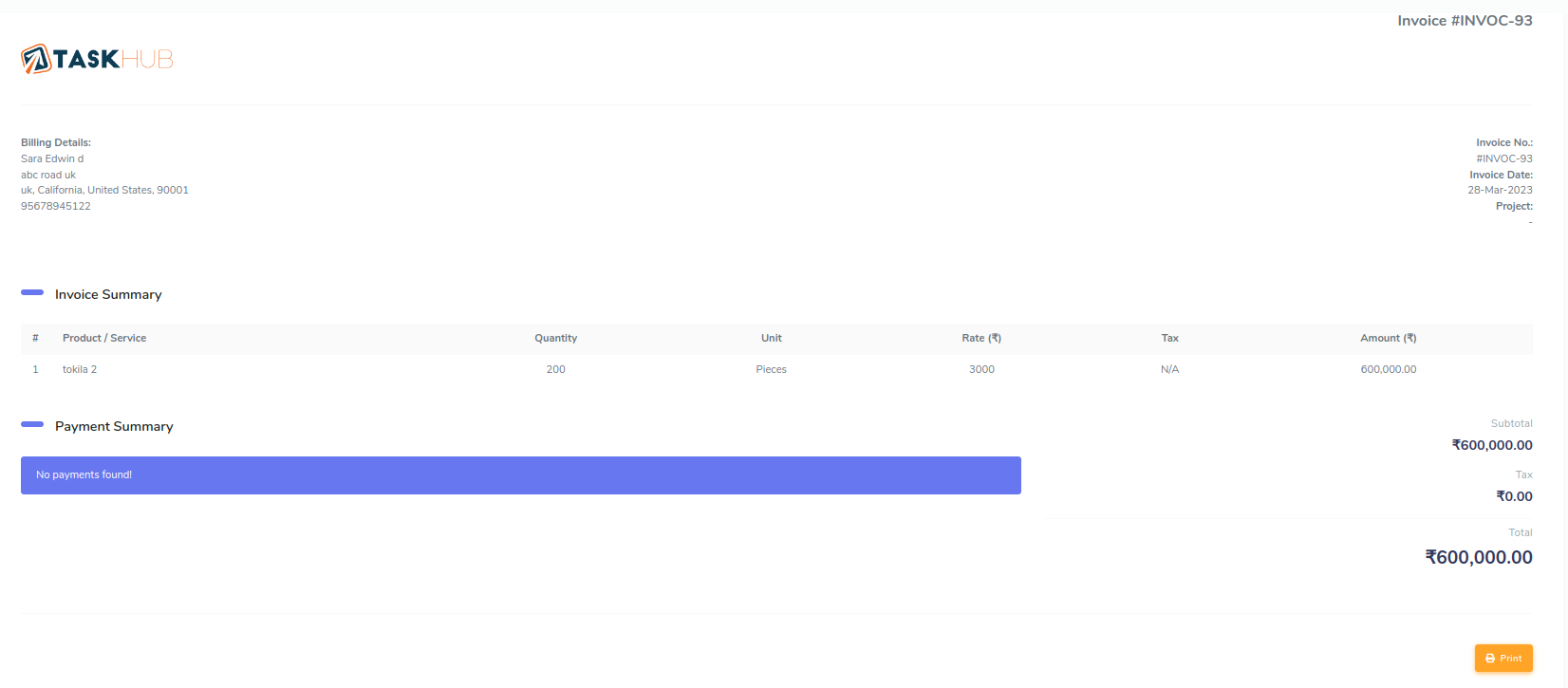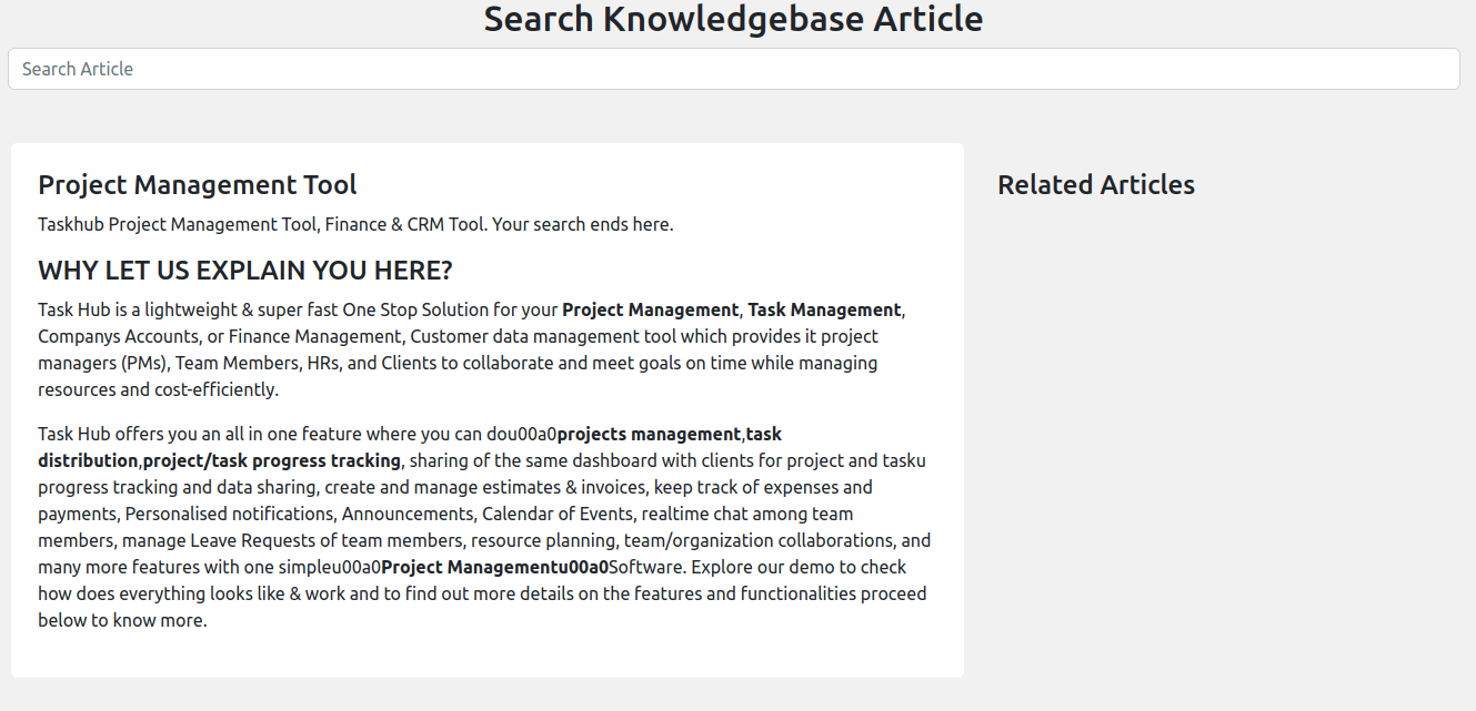 It provides basic information about task also you can filter tasks by project, status, due date, clients and users. you can see detailed information of particular task by clicking view button.